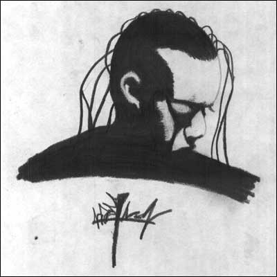 With each second grating on his conciousness, the figure becomes more defined. More real. A vinyl trench coat draped across broad shoulders drifts open lightly, Giving visual access to his normal attire in human form. His chin angled out defiantly, hollow eyes tainted more and more with jagged lines of pure and reflective silver devour the scene bit by bit. Fingertips fluttering at his hips, metalic blades rip forth from his fore arms, jutting out over his hands and arcing past his fingertips where they end in a diamond shape of serated edges. Thin, pierced lips curl in the faint promise of a half-smile.