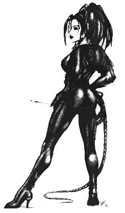With a molasses smile, so succulent and slow to form that it scarcely turns up the corners of her mouth, she gazes out at all she commands until a bold, yelped "Ha!" turns her smile to a sneer, and brings the embers of bravado flickering to life in her eyes once more.